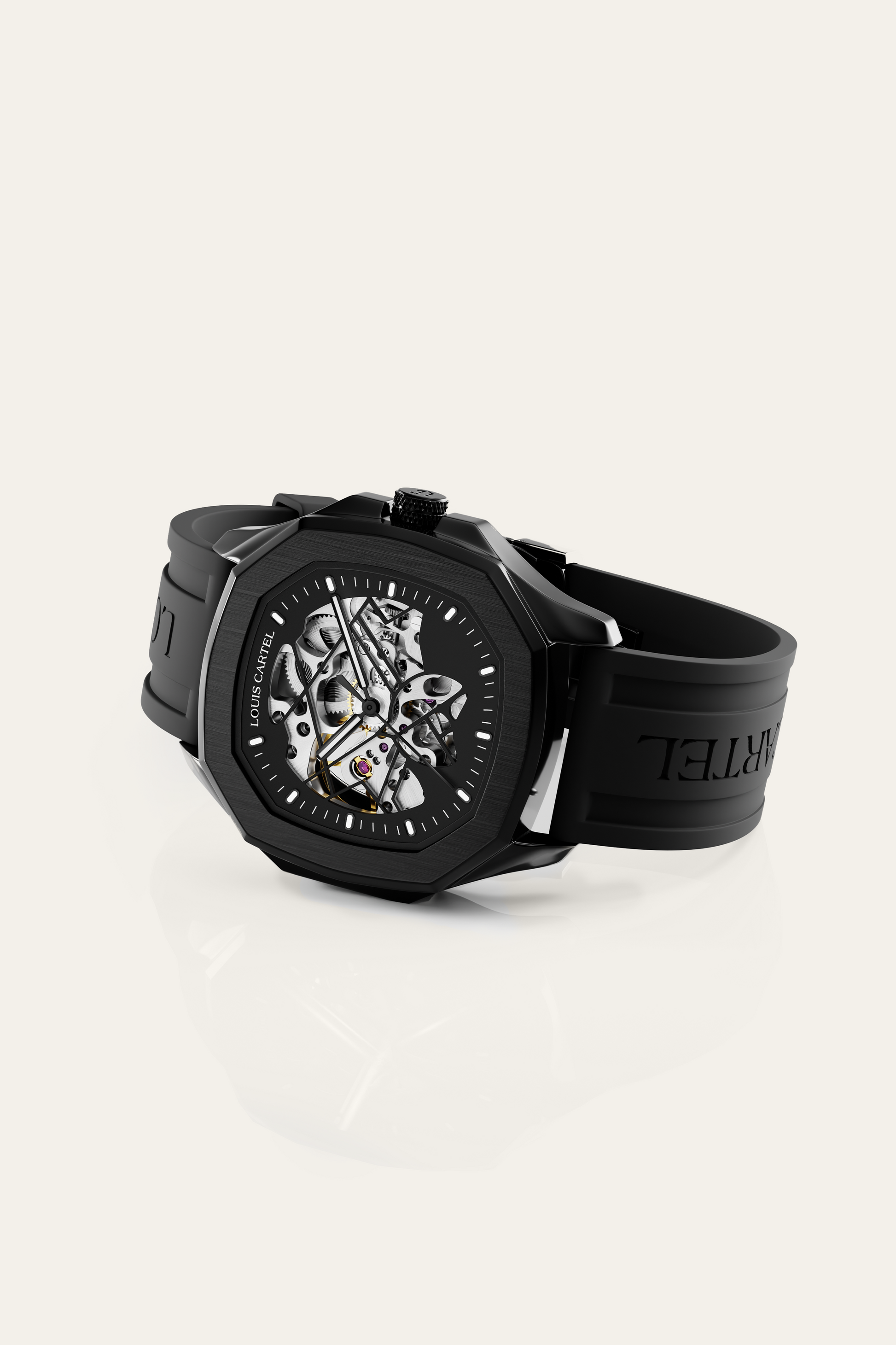 structure and design come together in a clean, controlled balance. The open dial reveals the movement in action, turning time into something you can actually see. Sharp lines and solid materials give it presence, while the restrained design keeps it refined and modern. Not just a watch, but something you experience every time you look at it.